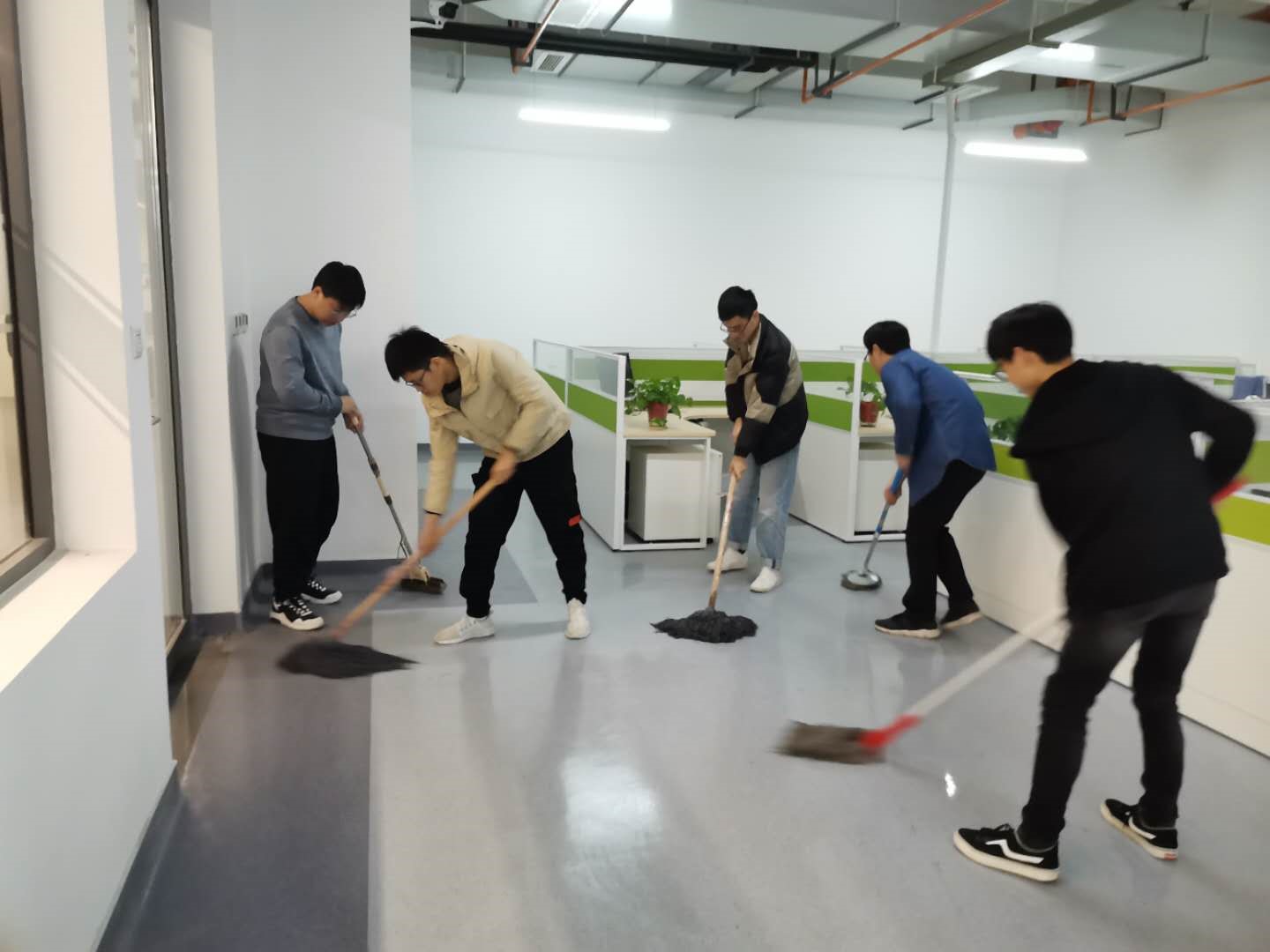 此次团日活动主要对学院学硕及专硕教研室进行了清扫,对学生工位的桌面环境进行了整理和美化。在团支书和班长的领导下,党员同志带领同学们有序打扫了2008-2010教研室及2062-2067教研室。李宗津等同学负责提水,李书文等同学负责地面清理,张靓等同学负责对绿植浇水,王志英等同学负责清理工位桌面。在细致的安排下,同学们不落下任何一个角落,对每一盆绿植都进行添水和枯叶打理,对每一条走道进行认真清拖。打扫的过程中,也得到了其他支部同学们的支持和肯定,大家情绪更加高涨。经过同学们的认真打扫,工位环境焕然一新,团支书对本次活动进行了总结,此次活动圆满结束,但劳动深存于大家心间,存于每一天,存于每一件事。
