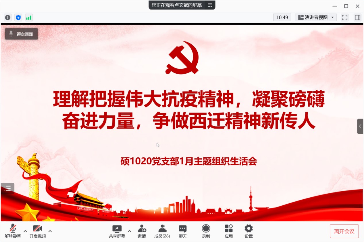 【凝材聚力 抗疫有料】材料学院硕1020党支部召开“理解把握伟大抗疫精神,凝聚磅礴奋进力量,争做西迁精神新传人” 主题组织生活会议