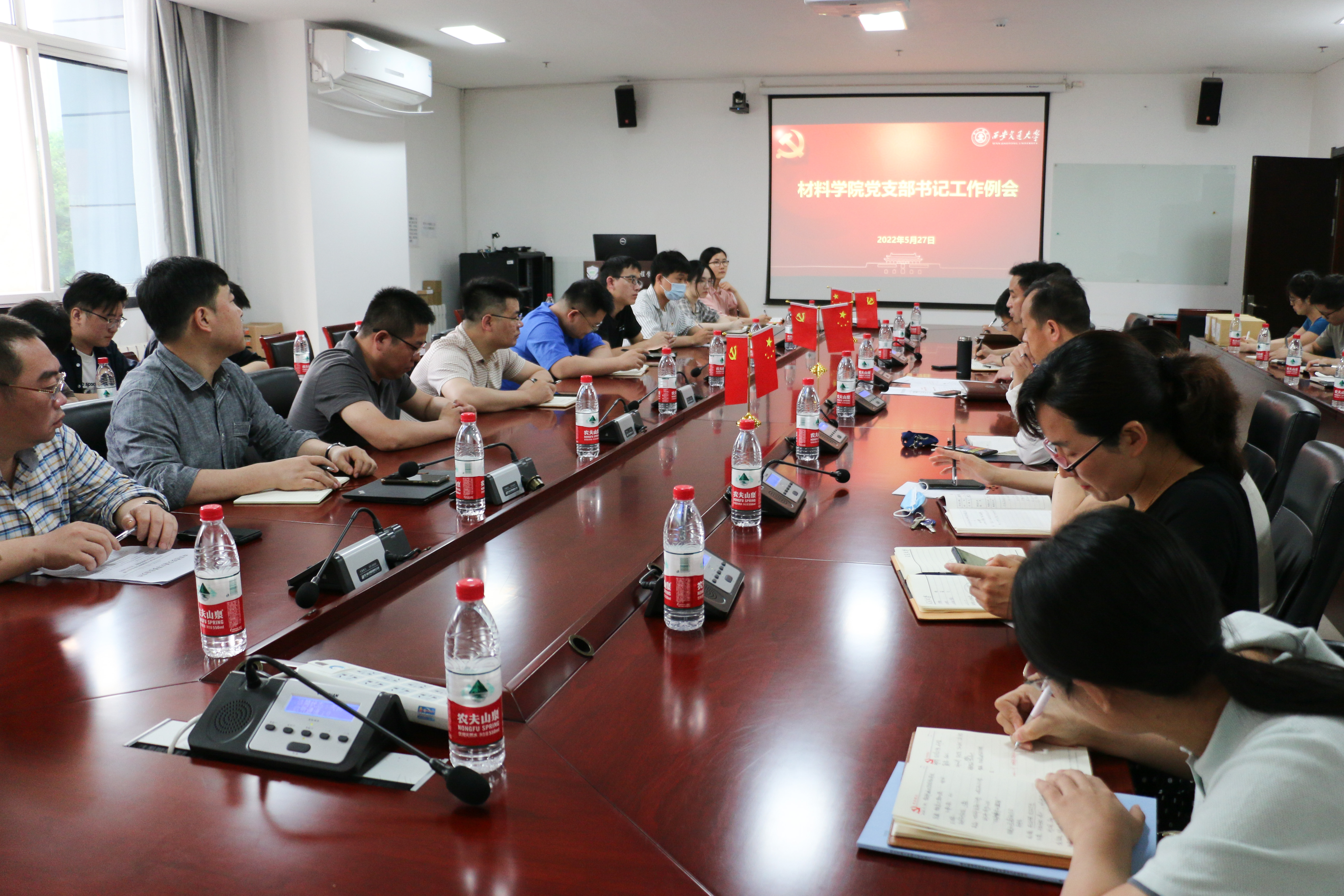 2022年5月27日上午,材料学院在仲英楼第三会议室召开了党支部书记工作例会。会议由材料学院党委书记潘希德主持,材料学院党委副书记魏炜、全体党支部书记参加会议。