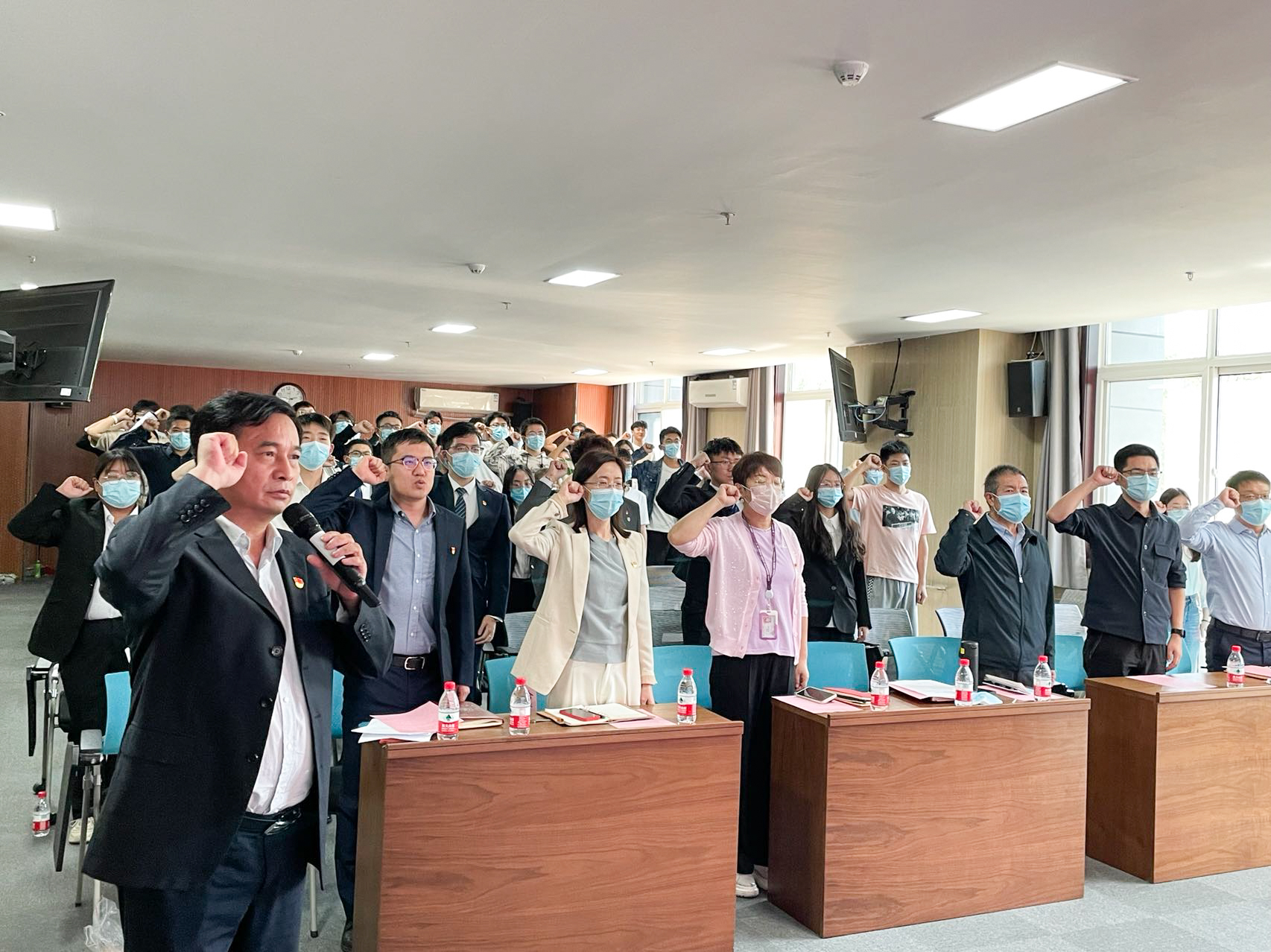 大会伊始,全体人员起立奏唱国歌。组织员王曦苑向大家介绍了师生联合党支部成立的背景。学校贯彻落实《中国共产党普通高等学校基层组织工作条例》,落实立德树人根本任务,坚持“五育”并举,推进“三全育人”,践行“一线规则”,明晰学院书院对应关系,压实学院育人主体责任,强化书院育人功能,深化学院书院协同育人,根据学校有关文件精神,决定成立材料学院文治彭康本科生师生联合党支部。