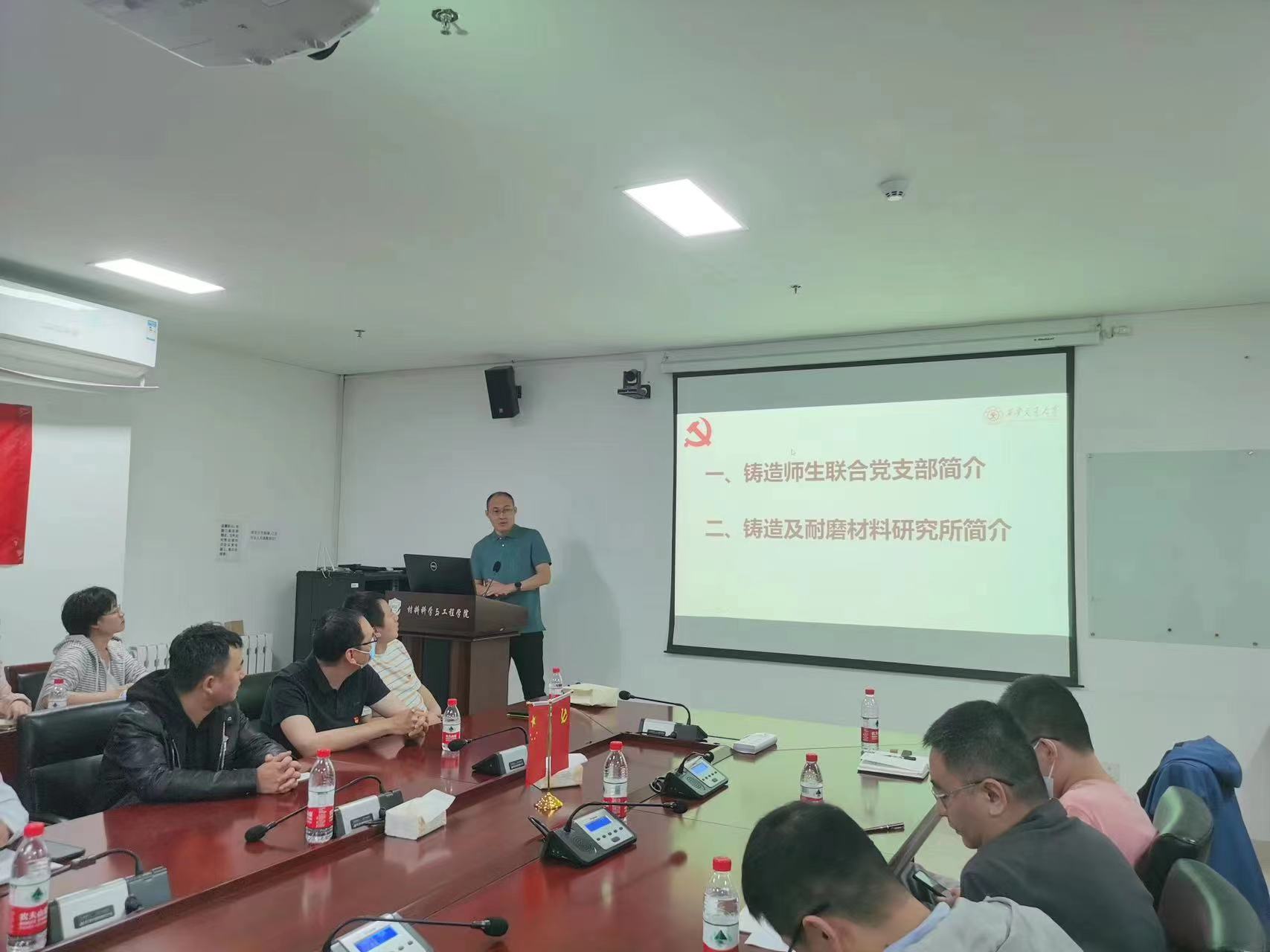 孙琨同志代表铸造师生联合党支部对西北有色金属研究院腐蚀与防护研究所支部党员同志的到来表示热烈的欢迎。随后慕伟意书记向与会人员介绍了腐蚀与防护研究所支部的宣传思想工作情况、强化政治功能完成重大任务情况及党风廉政建设情况,并对研究所的发展概况、研究领域及关键设备等方面做了详细介绍。铸造师生联合党支部的坚永鑫同志就支部建设情况、获得成就及铸造所的研究方向进行了介绍。双方就支部建设及研究方向、校企合作等方面进行了热烈的讨论和细致的交流。