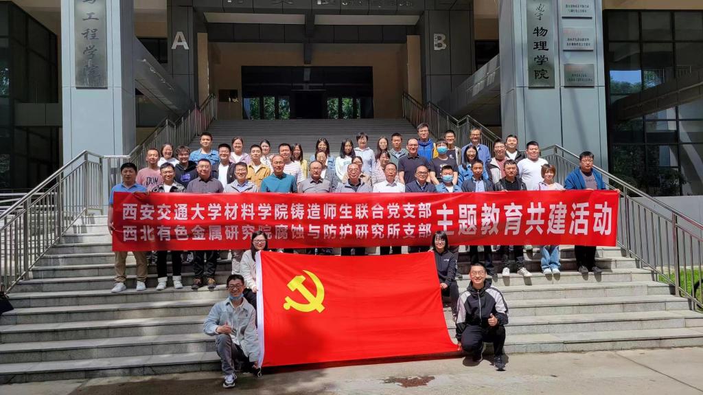 为加强校企合作,促进成果转化,5月22日上午,西安交通大学材料学院铸造师生联合党支部与西北有色金属研究院腐蚀与防护研究所支部在西安交通大学材料学院第三会议室开展了主题教育共建活动。西北有色金属研究院腐蚀与防护研究所支部书记慕伟意,材料学院铸造师生联合党支部书记孙琨,所长刘志伟等50多名党员参与了此次共建活动。