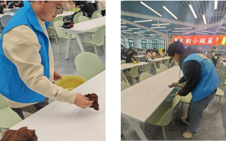 在青年之家值班志愿服务活动中,支部成员热情帮助来访者,解答问题,维护了青年之家这一温暖空间的正常运转,让更多青年能够找到学习交流的场所,感受到集体的关怀。支部成员也积极参与“文明餐桌”志愿服务活动,专注于餐厅内的收拾餐桌等工作,旨在改善剩饭剩菜过多造成浪费、将食物残渣等丢弃在餐桌等不文明行为。每一次服务都是对志愿精神的践行,通过日复一日的点滴奉献,大家深刻体会到志愿服务带来的温暖与成就,感受到奉献的价值和意义。