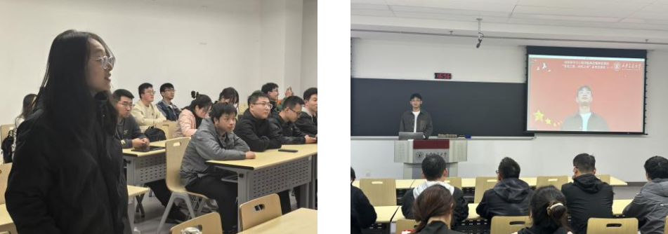 宣讲环节结束后,支部成员何佳莉和吴文翰分享了他们的心得。何佳莉被交大师生在国家建设中无畏艰辛、勇往直前的精神深深感动,尤其是在积极抗疫中展现出的责任感和使命感,同时也希望西迁精神在我们这一代能够继续传承与发扬。吴文翰强调,当代青年应将这种精神内化于心、外化于行,不论面对何种挑战,都要胸怀大局、勇于担当,将个人的成长与国家的发展紧密联系,为国家的繁荣昌盛贡献力量。大家一致认为,西迁精神不仅是一种精神财富,更是一种无形的力量,激励我们在新时代中继承和发扬先辈们的光辉传统。
