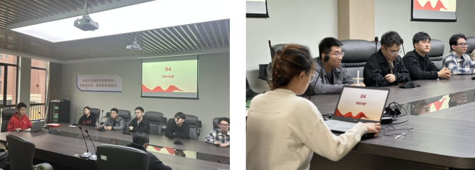 为推动理论学习常态化,团支部特别设置了每月一期的“青年读书会”与“青年讲堂”活动,作为支部思想建设的长效机制。本期“青年读书会”围绕《习近平与大学生朋友们》与《论党的青年工作》两本书籍展开学习。张妍谈到,通过阅读《习近平与大学生朋友们》这本书,她深刻体会到习近平总书记对青年的关怀与期望。习近平总书记的谆谆教诲提醒大家,不仅要志存高远,将个人理想融入国家事业,更要脚踏实地,提升自身素质,成为时代所需的栋梁之材。杨承达同学阅读《论党的青年工作》之后,深受习近平总书记提出的“树立正确价值观,坚定理想信念”指导思想的鼓舞,认为青年不仅要具备专业能力,还应有坚定的政治立场和高尚的道德情操。这次学习让他更加坚定了为中国梦而奋斗的决心,并认识到作为青年应勇于创新、脚踏实地,用实际行动为国家建设贡献力量。