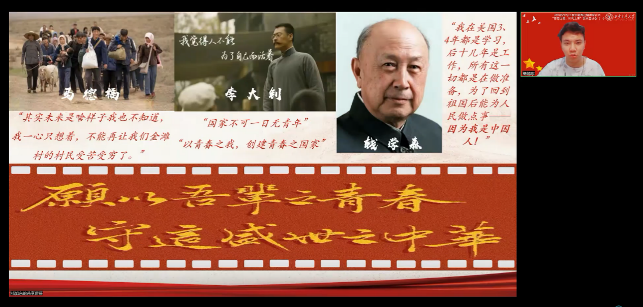 不忘初心,青春朝气永在;志在千秋,百年恰是少年!习近平总书记指出:“新时代新征程上,全国各族青年听从党和人民的召唤,在科技创新、乡村振兴、绿色发展、社会服务、卫国戍边等各领域各方面勇当排头兵和生力军,展现出自信自强、刚健有为的精神风貌。党中央对广大青年充分信任、寄予厚望!”你我向上,国家向前为了凝聚广大青年坚定不移地跟随党走,投身于新时代的伟大征程,继承并发扬西迁精神,并宣传和落实总体国家安全观,1030日下午,材料学院西迁精神宣讲团同S4020团支部联合举办了第一场“青春之我,时代之音”系列宣讲会。