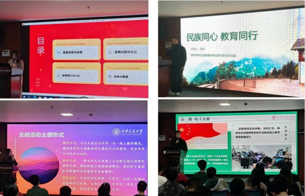 支部在支教中充分发挥党员先锋模范作用。来自多个党支部的党员们经过严格培训后迅速投入辅导工作,他们注重与学生建立良好情感联系,获得学生的信任后,根据学生需求定时推送练习题并详细讲解,同时密切关注学生学习动态,每日汇总反馈,及时调整教学策略。在三个月的时间里,党员们在学习指导、行为督促、思想引导等方面全力以赴,与学生结下深厚情谊,确保支教工作扎实开展,为帮扶当地学生学业,促进民族团结贡献交大力量。
