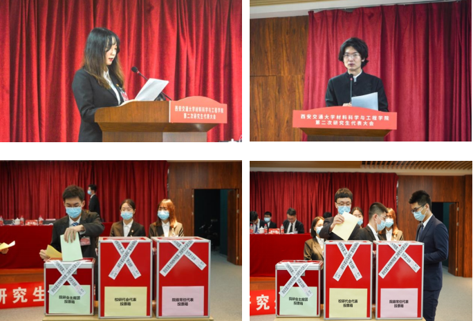 大会审议并通过了“西安交通大学材料学院第二次研究生代表大会主席团名单”、《西安交通大学材料学院研究生代表大会选举办法》。经过122名与会代表民主投票选举产生了18名西安交通大学第十二次研究生代表大会代表、30名材料学院常任代表和3名材料学院研究生会主席团成员。