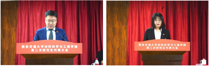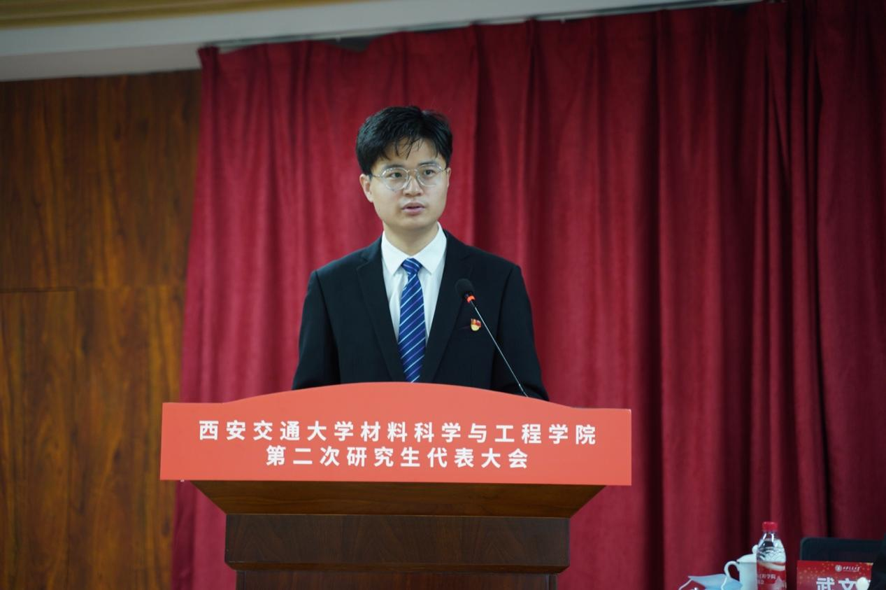 为深入贯彻落习近平新时代中国特色社会主义思想,切实发挥学院和同学之间的桥梁和纽带作用,全心全意为全院研究生服务,材料学院分党委、校研究生会的领导下,在学院团工委的大力支持和全体代表的共同努力下,11月6日上午,西安交通大学材料学院第二次研究生代表大会在中国西部科技创新港躬行楼3-2014报告厅顺利召开。本次大会由材料学院党委副书记魏炜、大会主席团成员贾昀清同学共同主持。