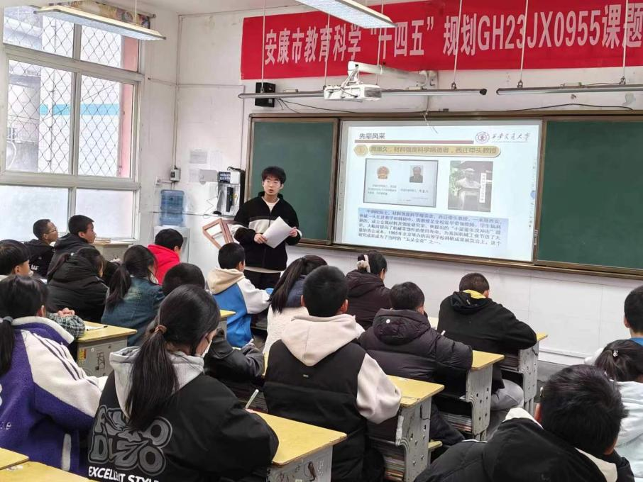 会后,材料学院团委书记李博教授给八仙中学的同学们带来了一堂以“材铸神器 料定乾坤”为主题的科普讲座,讲座内容深入浅出、内容丰富、案例生动,极大地激发了同学们对材料学的兴趣,让同学们领略科技的魅力,在同学们的心中埋下科技报国的种子。同时,材料学院西迁精神宣讲团的许安伟和沈鸿飞两位同学面向八仙中学的同学们开展西迁精神专题宣讲,讲述交大西迁历史和西迁故事,使同学们感悟先辈风采、厚植家国情怀、争做西迁精神新传人。