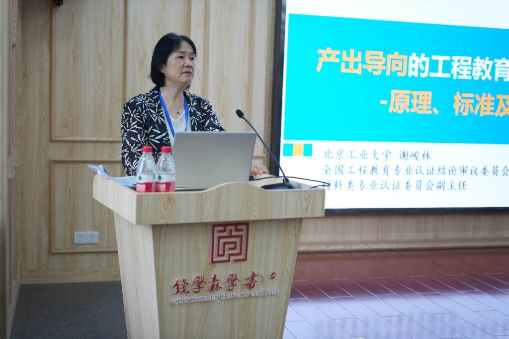 开幕式结束后,谢峻林教授以“产出导向的工程教育与专业认证——原理、标准及要点”为主题开展培训。她主要从原理、标准、要点进行讲解,解读了专业产出与产出评价、专业认证核心要件、面向产出的内部评价机制内涵、产出评价机制的审核要点,此外详细讲解了2024版专业认证通用标准的变化内容,为专业认证工作提供了方向与指南。