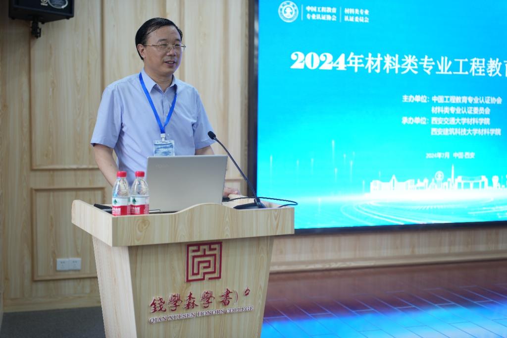 2024年7月18-19日,材料类专业工程教育认证研讨会在我校成功举办。本次会议由中国工程教育专业认证协会材料类专业认证委员会主办,西安交通大学材料学院和西安建筑科技大学材料学院联合承办。来自哈尔滨工业大学、北京理工大学、西北工业大学、中南大学等40余所高校材料类专业的专家和教师代表以及中国有色金属学会和中国汽车工程学会的领导和工作人员共计80余人参加研讨会。