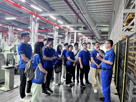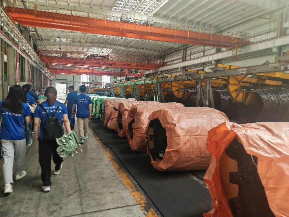 在进行安全教育培训后,实践团队实地观摩了半成品车间、湿拉车间和帘线车间,了解半成品工序、湿拉工序以及帘线工序等生产流程。大家深刻体会到了中天钢铁淮安公司在实现智能化升级和数字化转型方面的创新精神,大家表示希望将所学的理论知识与生产实践紧密结合,运用专业知识为社会创造更大的价值。