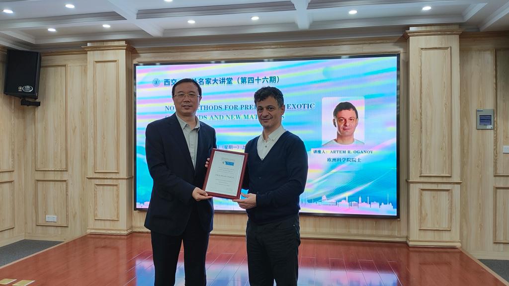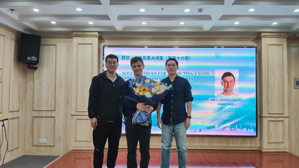 随后,Artem R. Oganov院士还做客了“西交·海外名家大讲堂”,为交大师生作《Novel methods for predicting exotic compounds and new materials》的学术报告。本期“西交·海外名家大讲堂”由材料学院、国际处共同主办,材料学院院长丁向东教授主持报告会。
