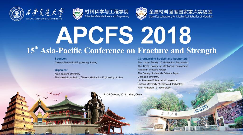 “第十五届亚太地区断裂与强度学术会议(APCFS 2018)”将于2018年10月21-25日在中国西安古都文化大酒店隆重举办。本次会议将由西安交通大学及中国机械工程协会联合承办。