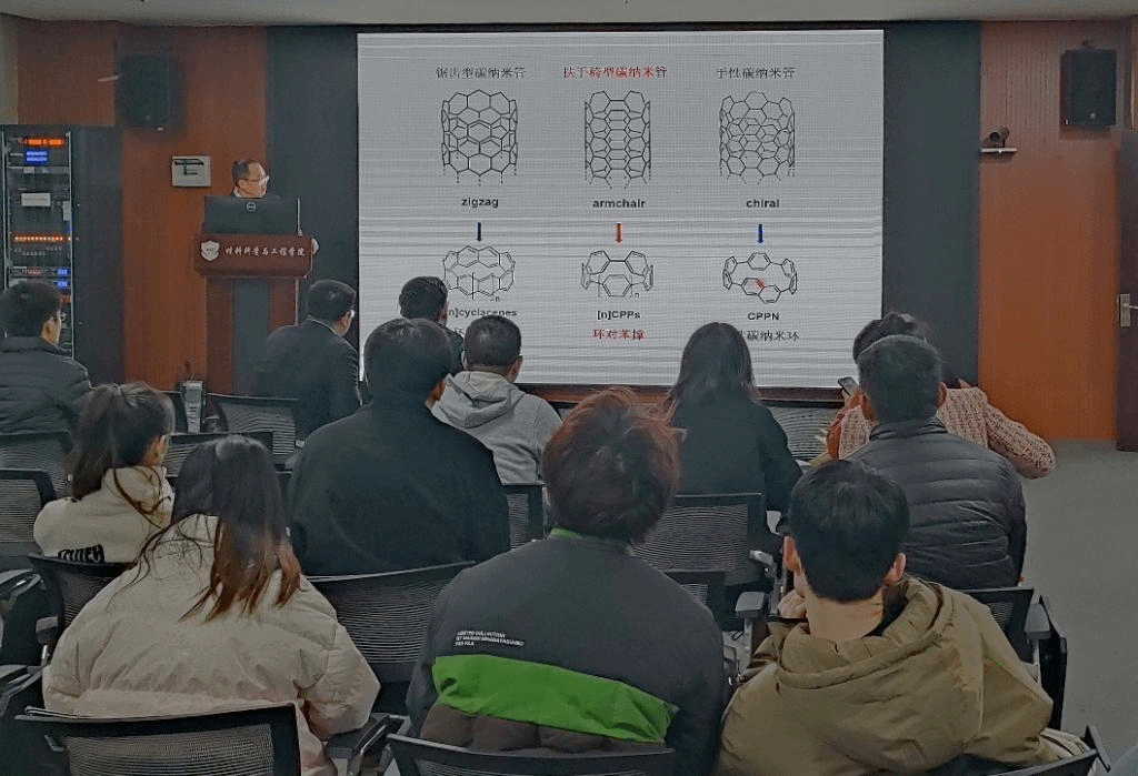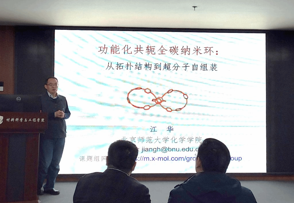 2023年11月17日,北京师范大学江华教授受邀在材料学院作题为“功能化共轭全碳纳米环:从拓扑结构到超分子自组装”的学术报告,材料学院副院长丁向东教授等六十余位师生参加了本次报告会,报告会由材料学院物理化学系张明明教授主持。