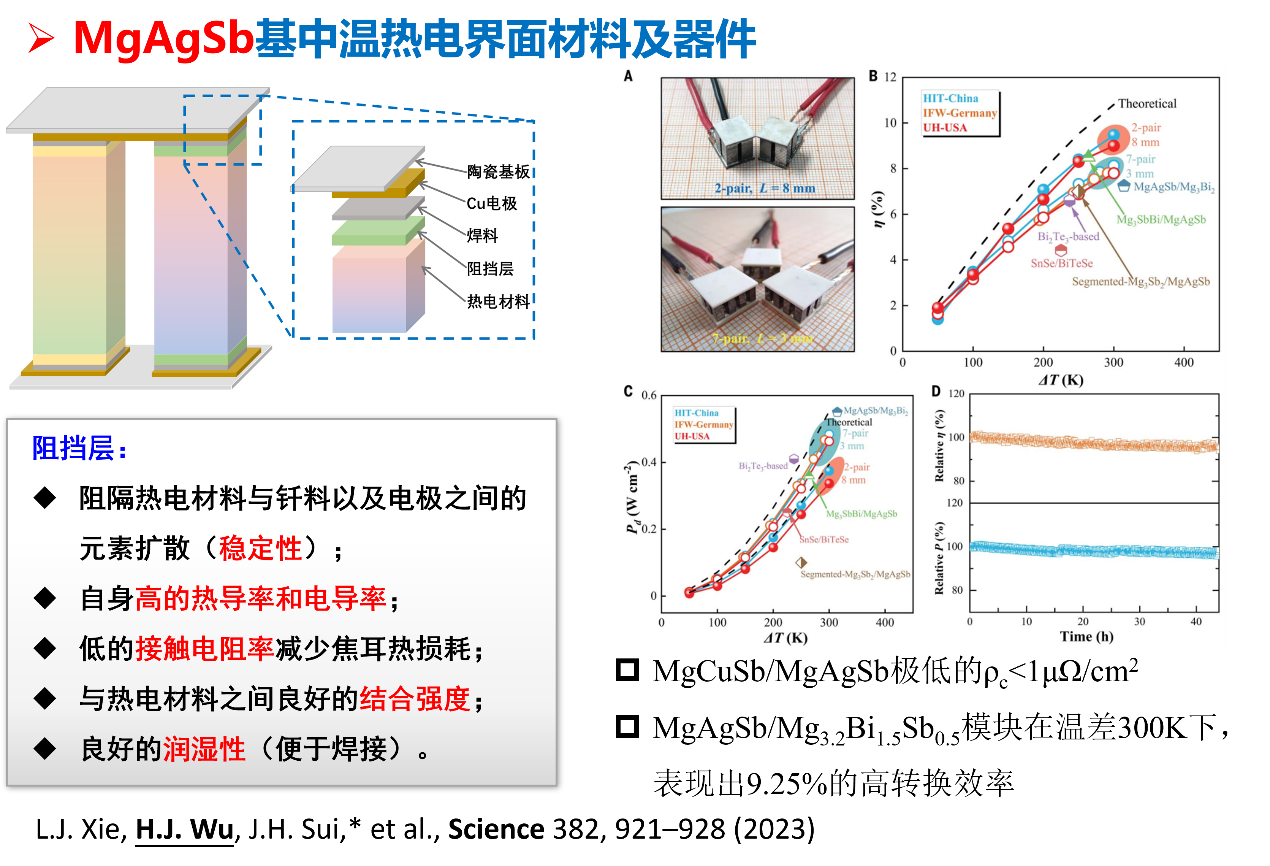 该合作团队进一步在热电界面材料智能设计和高效器件研制领域取得了关键突破实现了在300度温差下9.25%的热能到电能转化效率有望提高能源利用效率研究成果发表在《科学》(Science)上。