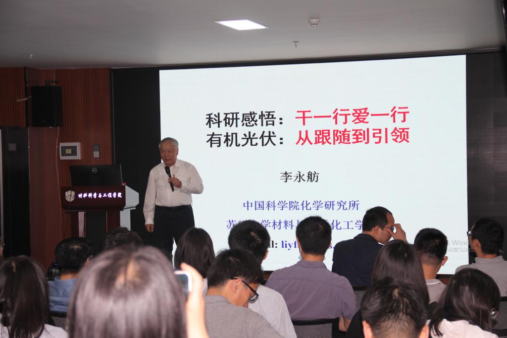 同时,李院士围绕“有机光伏材料和有机太阳电池的研究”给大家分享了有机太阳电池的发展历程和最新研究成果。李院士从有机光伏材料的分子设计出发、介绍窄带隙小分子受体光伏材料、低成本高效聚合物给体光伏材料、基于小分子受体的聚合物受体和巨分子受体光伏材料的最新研究进展。李院士的报告给各位科研工作者提供了新思路,对大家的科研工作有了新的指导。