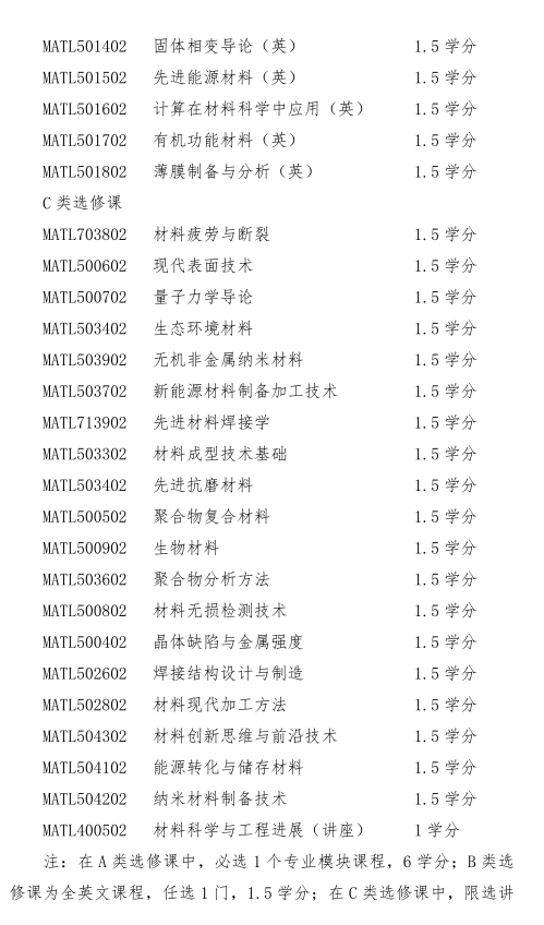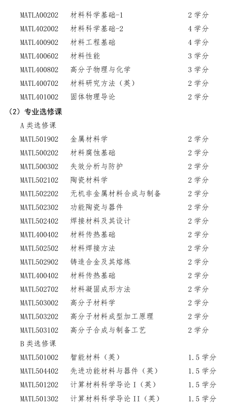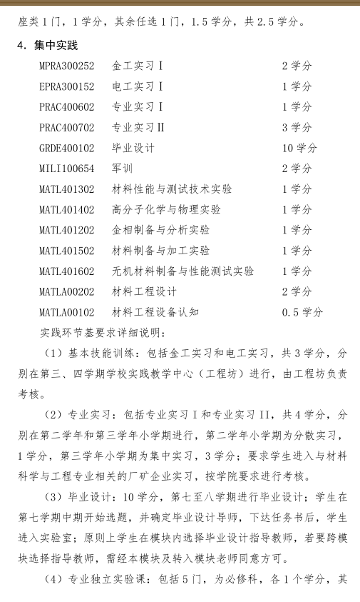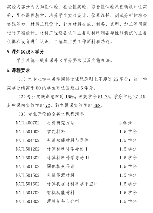 材料科学与工程专业培养方案(2019版)