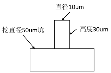 需要在underfill 表面用高精密的FIB聚焦离子束对样品表面准备测试柱1 mm的圆形区域制作测试柱(直径10um,高度30um),挖直径50um的坑,设备型号需要FEI Helios G4CX, 或者FEI Helios G5HX,才能满足需求。